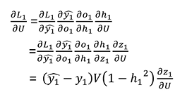 - L1에 대한 U의 기울기는 h2로 이어지는 U에 대한 영향만 받는다