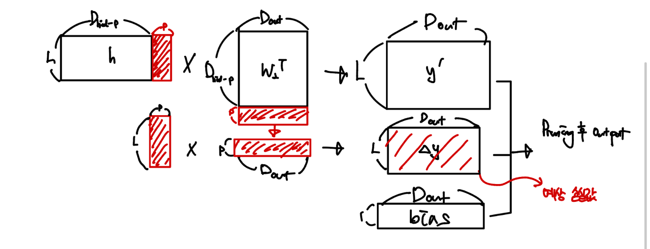 - 기존 출력 = Pruning에서 살아남은 뉴런의 output + Pruning 대상 뉴런 output + bias
