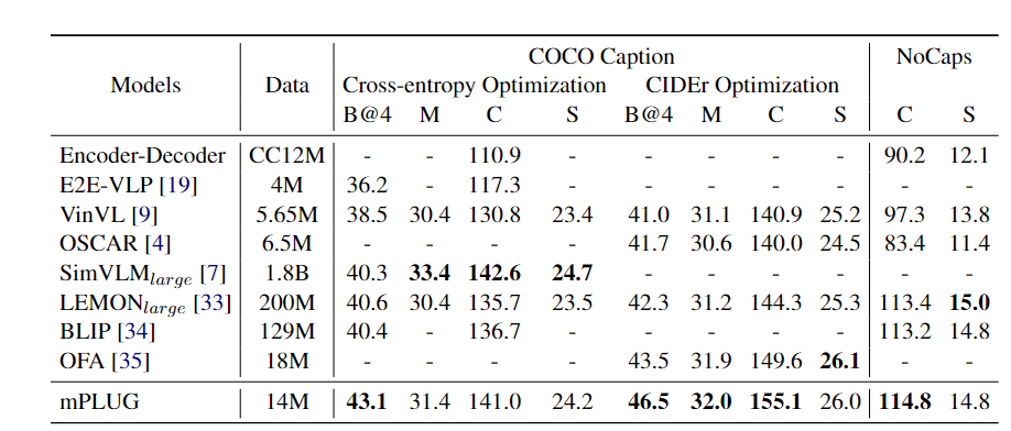 이를 해결하기 위해, 우리는 새로운 비전-언어 모델인 mPLUG를 제안한다.