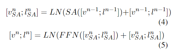이후, [vn;ln]은 최종 연결된 이미지와 텍스트 표현을 얻기 위해 반복적으로 다음 교차 모달 스킵 연결 네트워크로 전달된다.