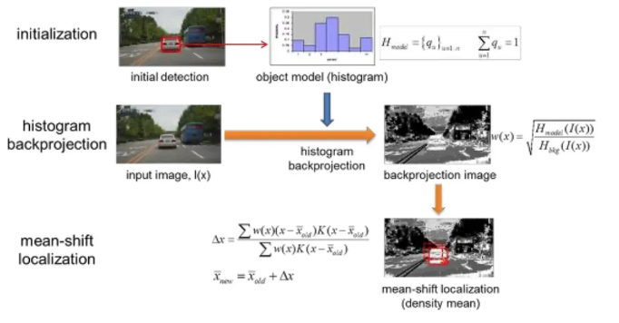 ⇒ 1. initial detection 에서 object model을 만든 후, input image에 대해 object model을 활용하여 histogram backprojection