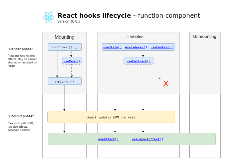 constructor()static getDerivedStateFromProps()componentDidMount()state getDerivedStateFromProps()shouldComponentUpdate()getSnapshotBeforeUpdate()render()componentDidUpdate()componentWillUnmount()이렇게 React Component 의 생명주기가 있습니다. 클래스 컴포넌트의 생명주기에 대해서 알아보았다면, 이제 함수형 컴포넌트의 생명주기에 대해 알아봅시다!