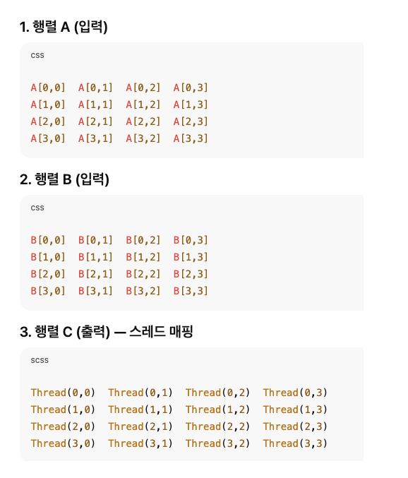 이 연산들은 병렬화가 가능해서, GPU의 수천 개 코어로 동시에 처리하면 CPU보다 훨씬 빠르게 실행됩니다.