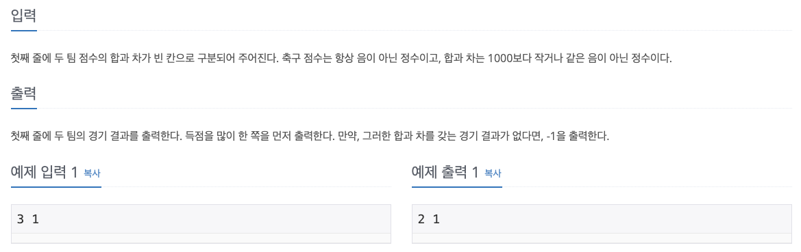 # 두 팀 점수의 합과 차 입력 (Sum, Sub)