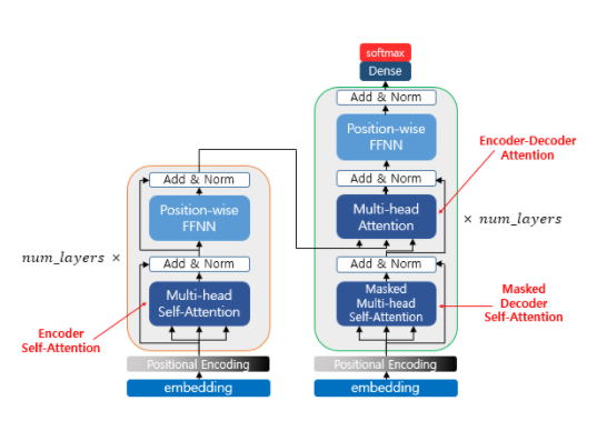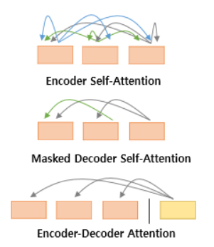 ๐ encoder-decoder attention:๋์ฝ๋๋ฅผ ๊ตฌ์ฑํ๋ฉฐ, ๋์ฝ๋๊ฐ ์ ์์ธกํ๊ธฐ ์ํด์ ์ธ์ฝ๋์ ์
