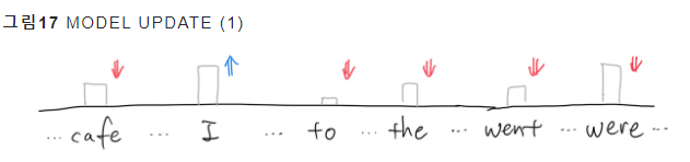 ์ผ๋ก ๊ณ์ฐ, 'cafe' ๋ค์์ผ๋ก ์ฌ ๋จ์ด๊ฐ there์์ ๋ง์ถ๋ ๊ณผ์ ex)I went to the cafe there. => I(0.01) went(0.01) to(0.02) ... (๊ดํธ์์ ๊ฐ์ ์ดํ