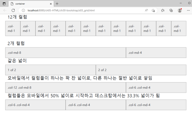 <h4>컬럼들은 모바일에서 50% 넓이로 시작하고 데스크탑에서는 33.3% 넓이가 됨</h4>