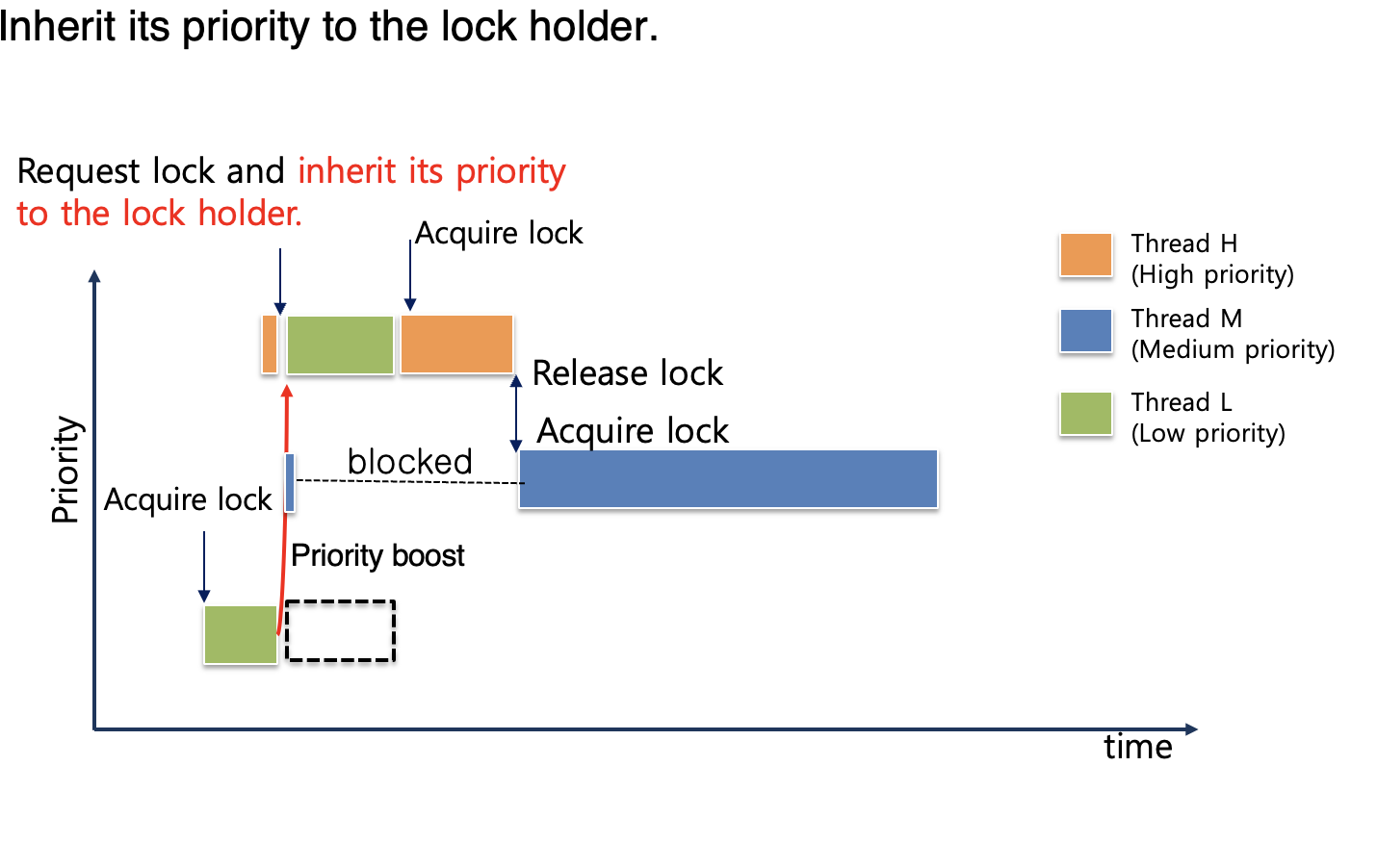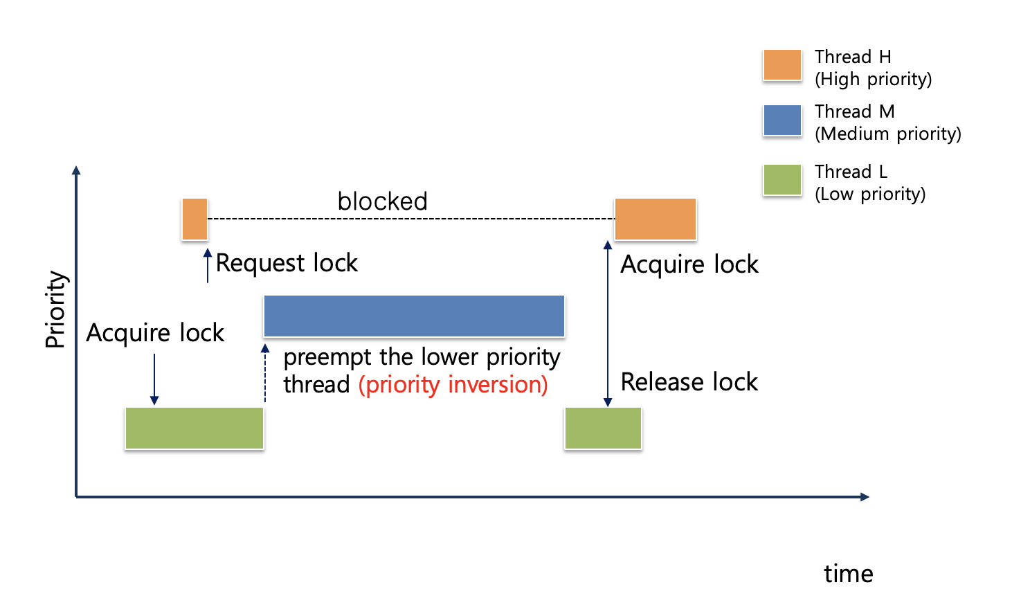 : 더 높은 우선순위를 가진 스래드가 낮은 우선순위를 가진 스래드를 기다린다