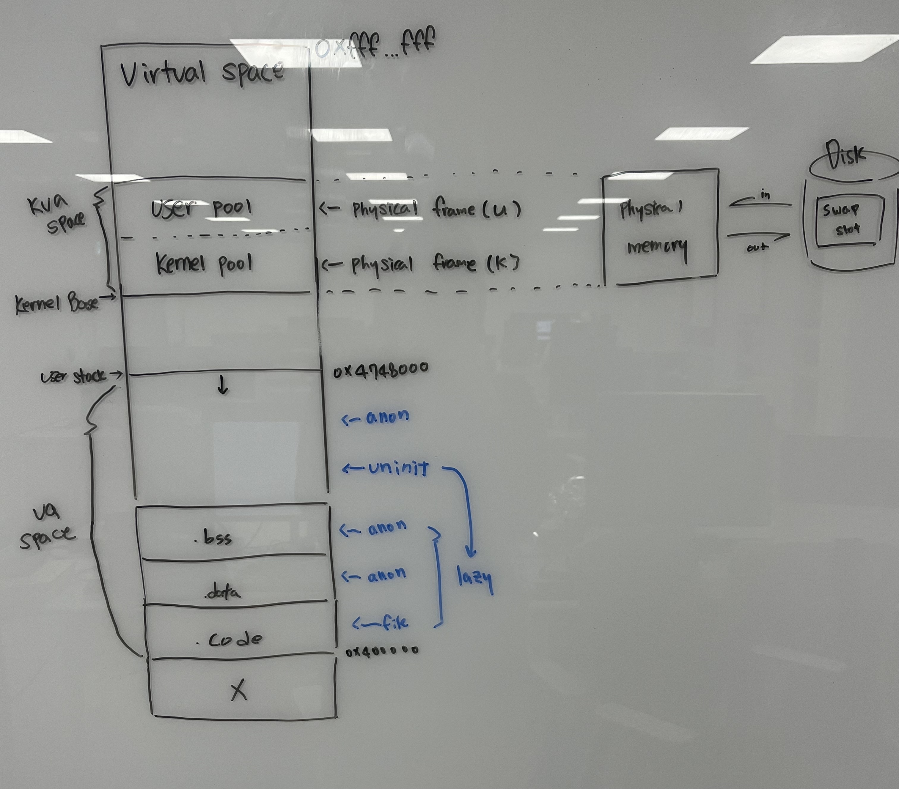 | all-zero 페이지 | 초기화 영역 | memset(frame, 0, PGSIZE) 사용 |