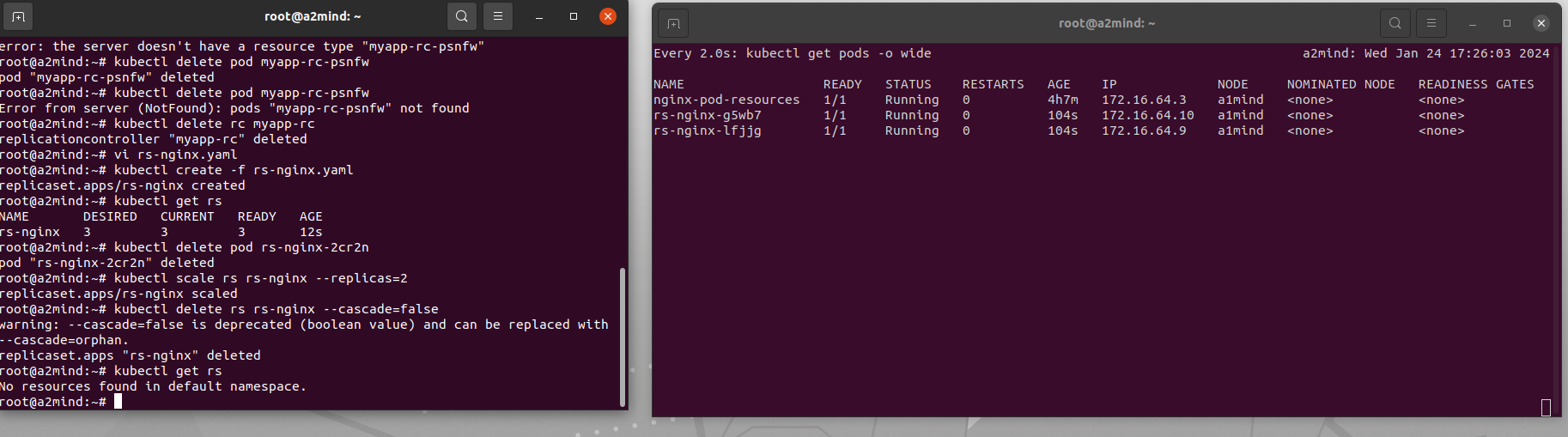 —cascade=false가 없으면 해당 rs의 파드도 함께 사라지는데 이 옵션 붙여주면 파드는 삭제 안됨.