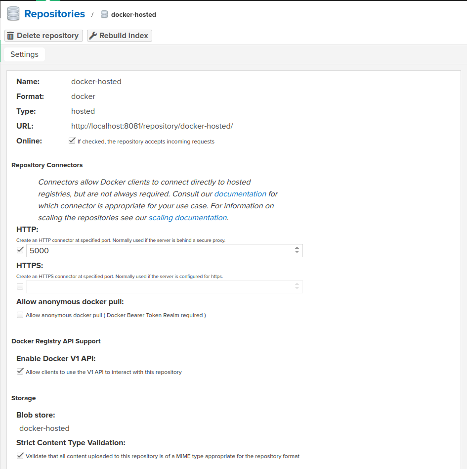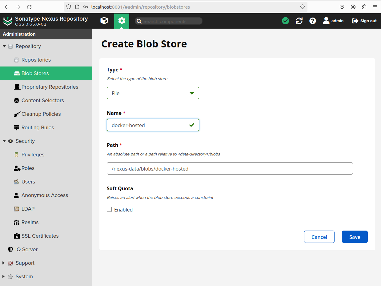 Blob store는 Proxy repository 나 hosted repository를 통해 배포된 바이너리를 저장하는 저장소