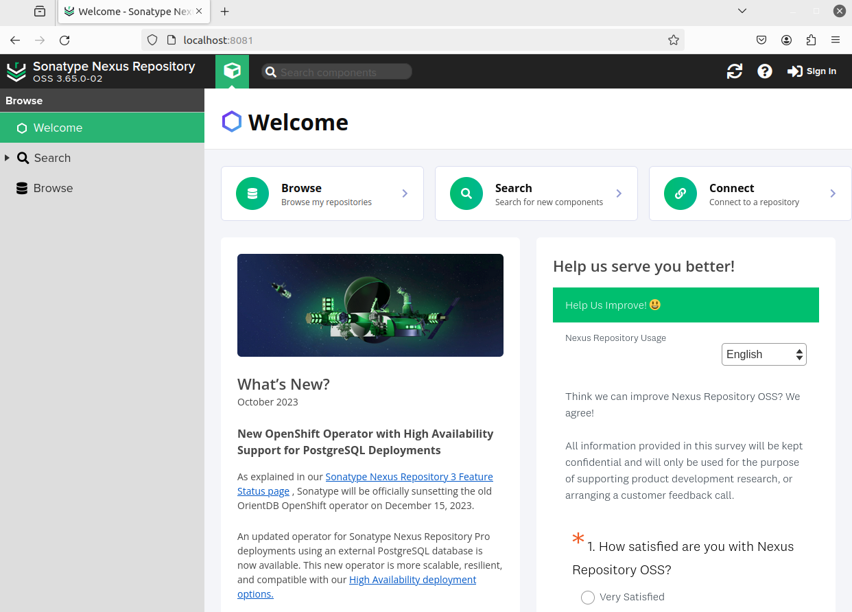 기본적으로 Nexus는 http://localhost:8081에서 실행된다