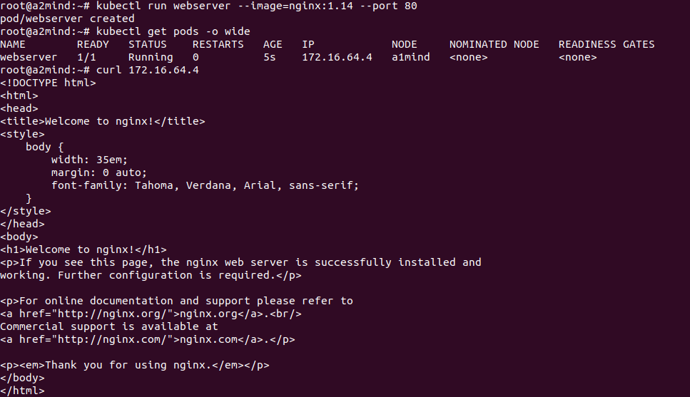 kubectl run webserver --image=nginx:1.14 --port 80