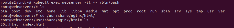 kubectl exec webserver -it -- /bin/bash