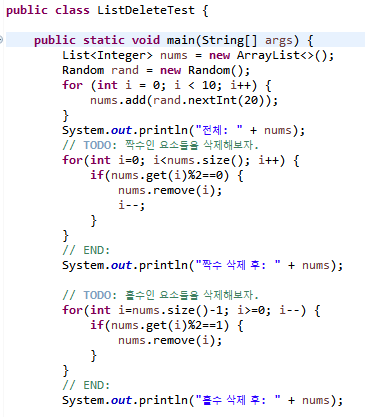 - 요소가 삭제되면 size도 줄어들기 때문에 index 차감이 꼭 필요하다