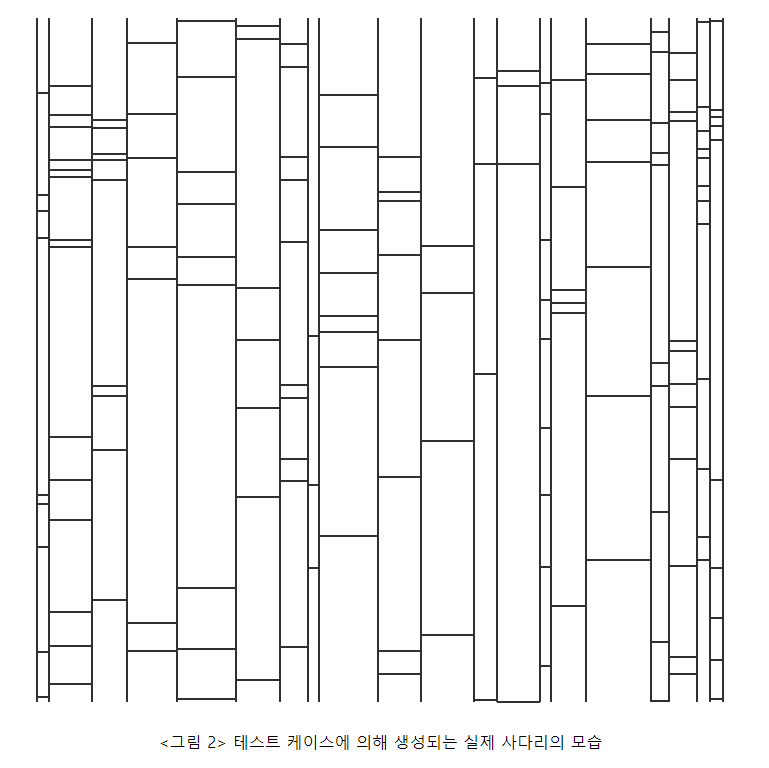 김 대리는 사다리타기에 참여하지 않는 대신 사다리를 그리기로 하였다.