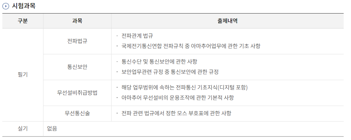 저는 육상무선통신사를 통해 전파법규, 통신보안, 무선설비취급방법을 면제했습니다.