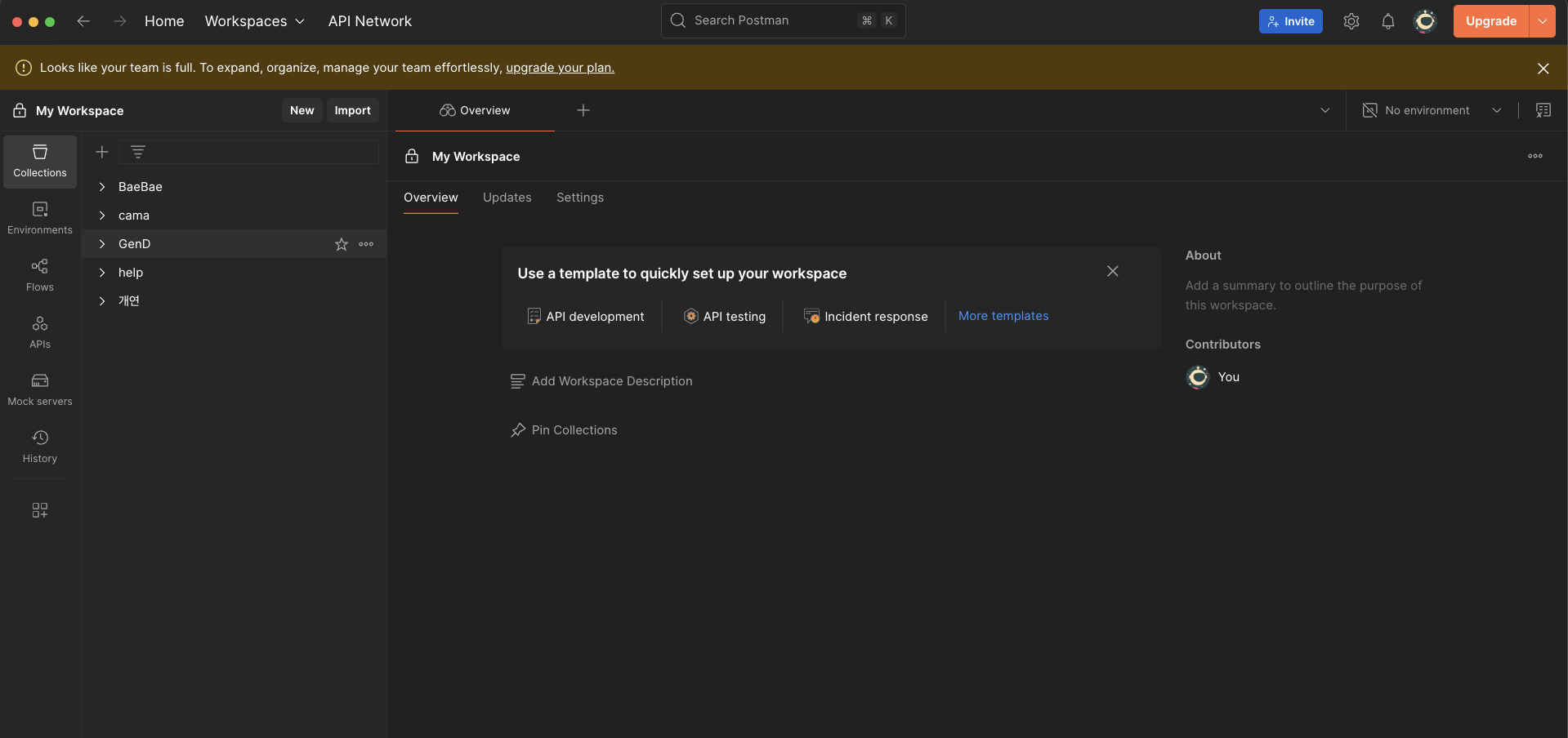 이런 방식으로 테스트를 진행하면, 요청과 응답 기록이 자동으로 저장되어 워크스페이스에 초대한 팀원들과 테스트 결과를 함께 관리할 수 있습니다.