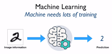 머신러닝이란? Human intelligence와 동일하지만 기계학습(train)을 거쳐야 제대로 예측할 수 있다.
