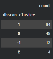 X_copy['dbscan_cluster'].value_counts()