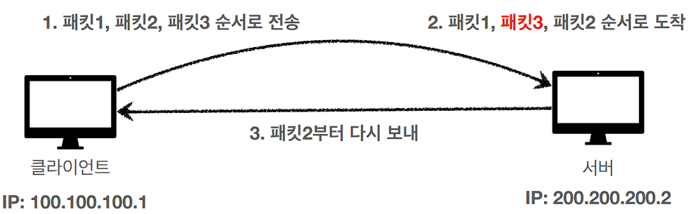 순서 보장 (Order Preservation): 데이터는 송신자에서 수신자로 전송되는 순서대로 도착하며, 수신자는 데이터를 받을 때마다 해당 순서를 확인한다. 이를 통해 데이터가 잘못된 순서로 수신되는 것을 방지한다.