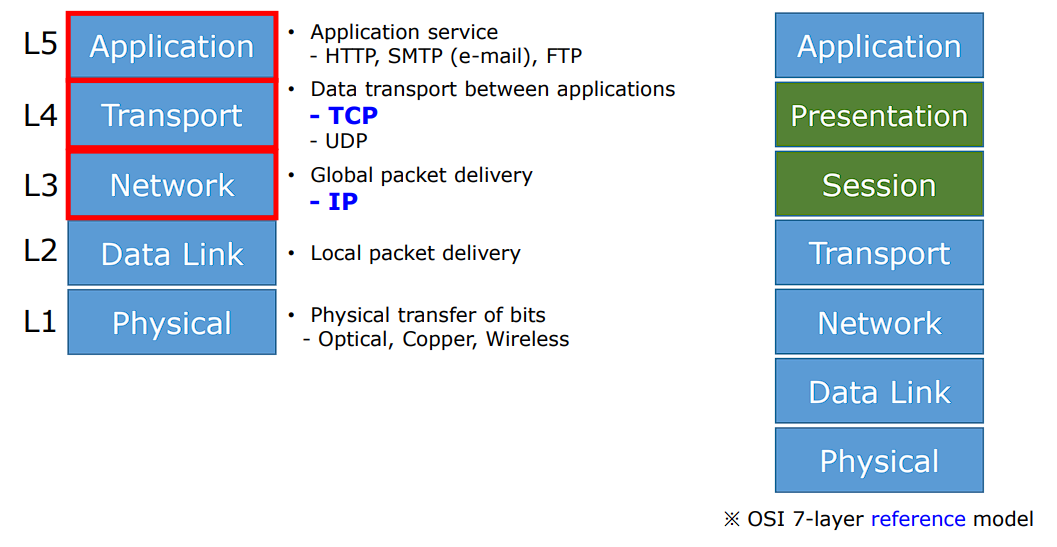 ➡️ 5개 계층 모델은 특히 네트워크 교육 및 통신 설계에서 사용되며, 일반적인 TCP/IP 4계층 모델보다 계층을 더 상세하게 설명한다.