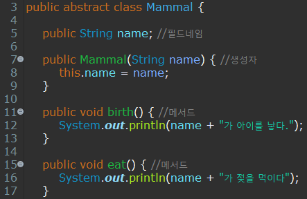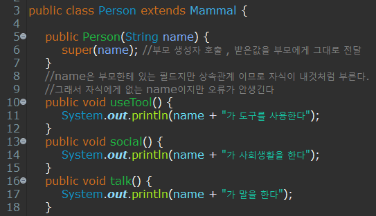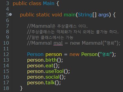 - Mammal 이라는 추상클래스를 상속 받는 Person을 만들었다