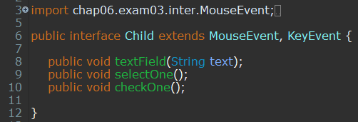 - interface인 MouseEvent와 KeyEvent를 상속받는 Child interface
