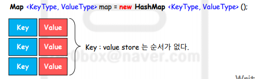 - Key와 Value의 타입은 클래스나 인터페이스만 가능하다(int ->Integer)