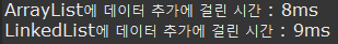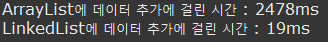 - 인덱스 중간에 넣었기 때문에 LinkedList가 빠르다