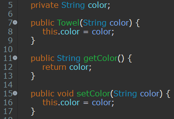 - Towel이라는 클래스에 매개변수를 String으로 받는 생성자 만들어줌