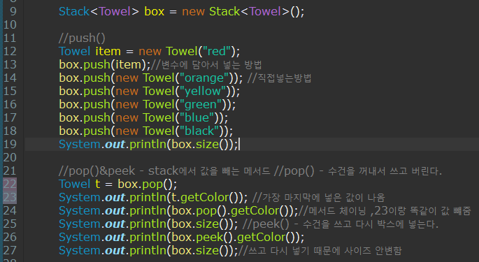 - pop : 수건을 꺼내서 쓰고 버린다