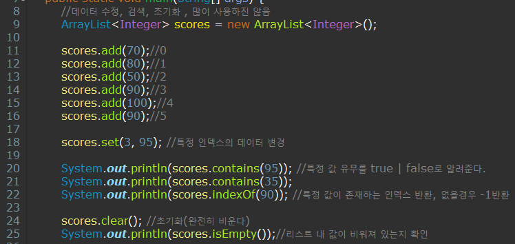 ArrayList의 데이터 수정, 검색, 초기화