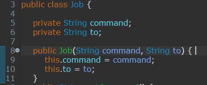 - 매개변수 String 2개를 갖는 생성자를 가진 클래스 Job 생성