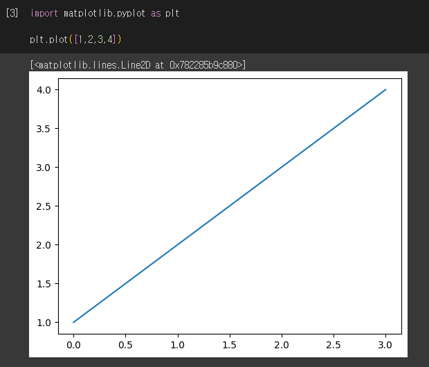 plt.plot([1,2,3,4]) # y값 1,2,3,4 로 증가