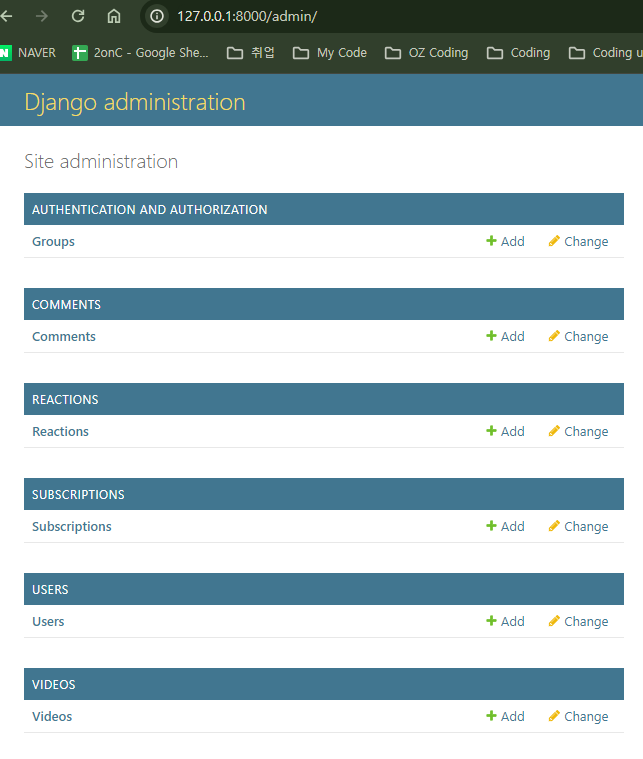 모델 변경 사항에 대해 migrate한다.