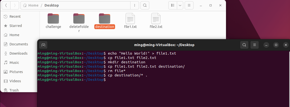파일과 폴더를 복사할 때는 cp 명령어를 사용한다. cp는 'copy'의 약자이다.