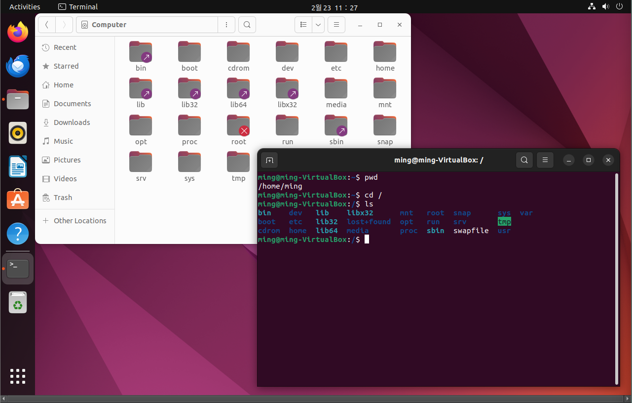 cd /home/(컴퓨터 이름)/Downloads/ # 절대 경로를 이용해서 Downloads 폴더로 이동