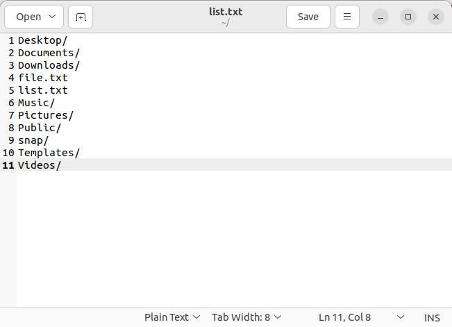 위 명령어를 입력하면 file.txt 파일을 터미널에서 열게 된다.