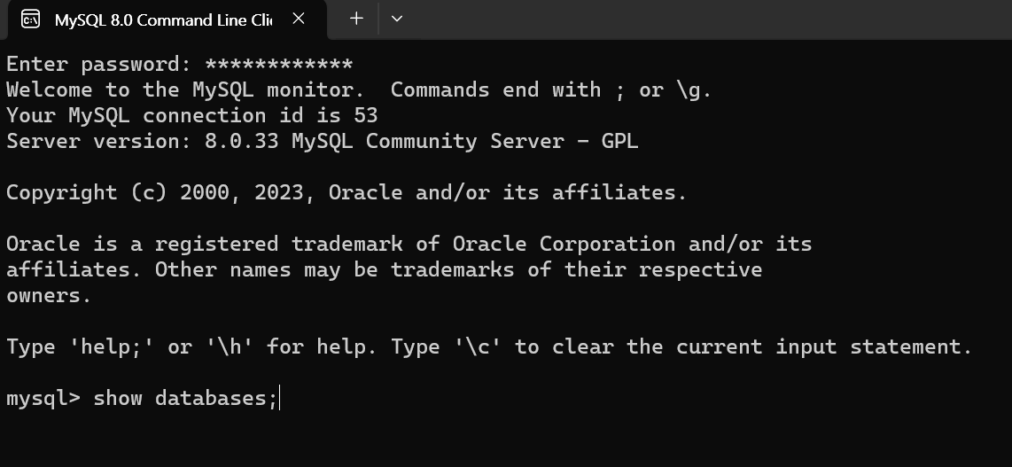 여기 접속해서 비번 치고 show databases; 명령어로 지금 내 mysql에 무슨 DB가 있는지 확인한다.