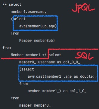 JPA JPQL 서브쿼리의 한계점으로 from절의 서브쿼리는 지원하지 않는다.