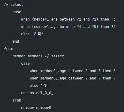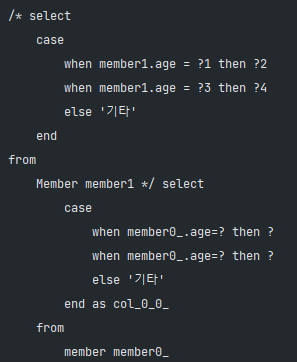 .select(member.username, member.age, rankPath) // 나이에 따라서 rankPath는 1, 2, 3이 조회됨