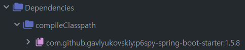 Gradle 탭에서 p6spy 의존성 추가 확인