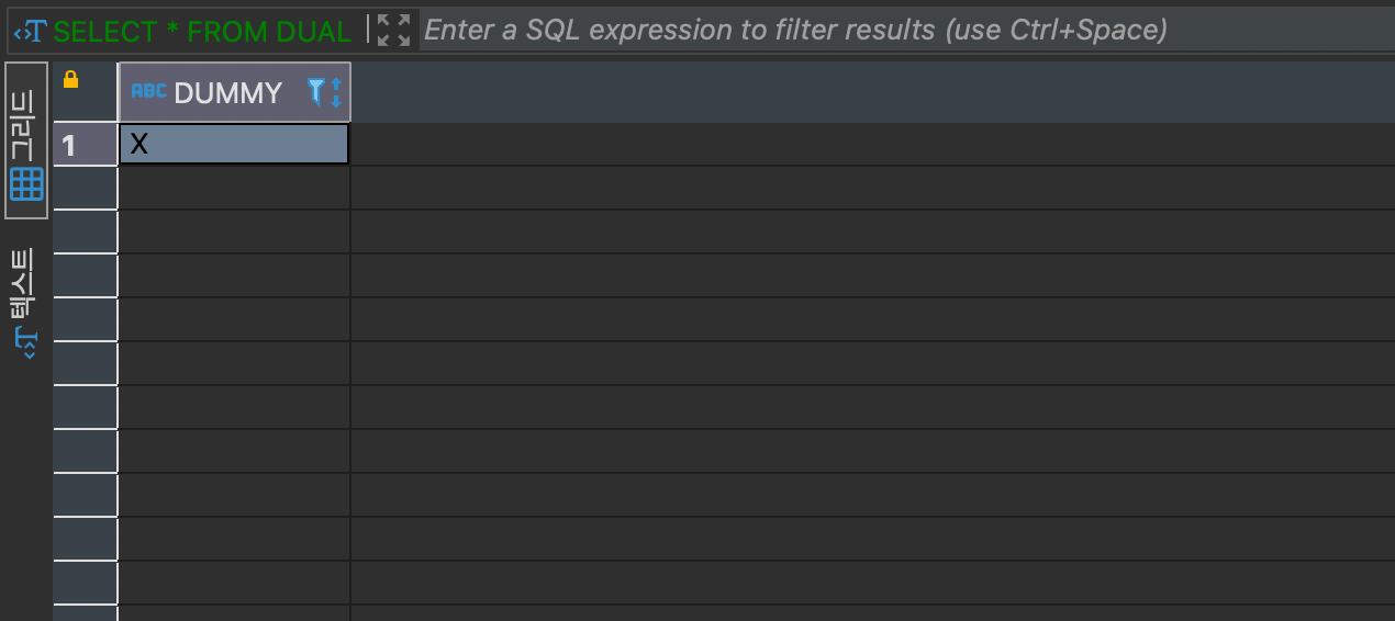 오라클에서 제공하는 기본 테이블로, 간단하게 함수를 이용해서 계산 결과값을 확인할 때 사용함