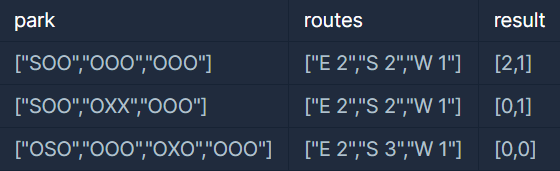 public int[] solution(String[] park, String[] routes) {