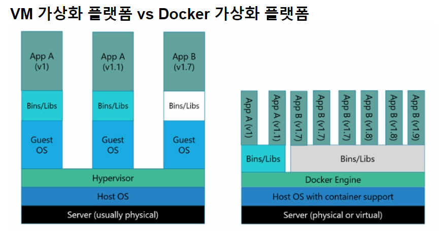 OS가상화의 경우에는 Host OS와 완전히 분리된다는 장점은 있지만 OS위에 OS를 올리기 때문에 무겁고 느릴 수 밖에 없다. 하지만 컨테이너 기반 가상화는 Host OS 그리고 Docker 엔진 위에서 바로 동작하며 Host의 커널을 공유 하여 I/O처리가 쉽워 성능 효율을 높일 수 있다.