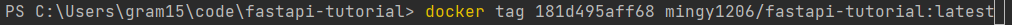 버전과 이름을 지정하지 못해서 해당 IMAGE ID를 선택해서 이름과 tag을 지정해줌