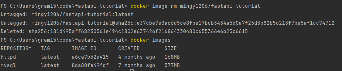 docke image를 삭제 (상관은 없음)