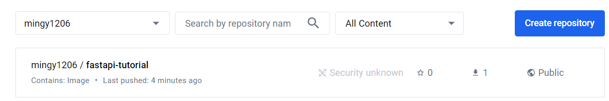 dockerhub에서 확인했을 때 이상없이 잘 올라갔다.