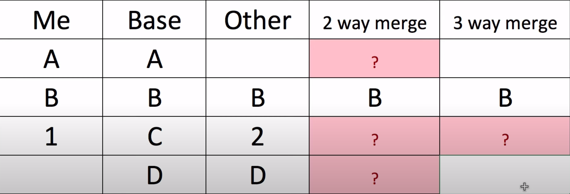2way-merge : 2개를 비교하며 동일하지 않을 경우에 Conflict 혹은 auto merge가 이루어짐